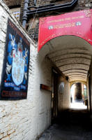 The alley by the Newman Arms advertising their food |