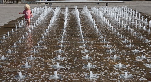 ![]() Children loved playing in the fountains at Granary Square |